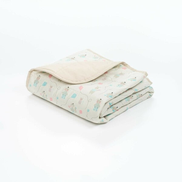 Leikkisän Leija-kuosin on suunnittellut Sanni Harju-Nikula. Kevytpeitteen paino 173 g.