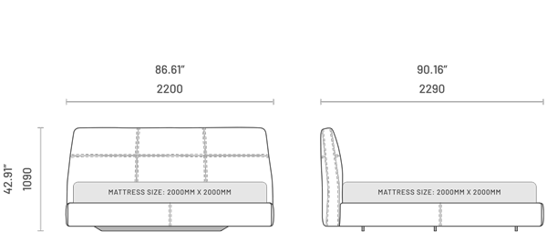 Upea Shelby sähnky on hakenut inspiraationsa geometrisistä muodoista. Selkeälinjainen verhoiltu runko yhdistettynä linjakkaaseen muotoiluun takaa mukavan ja pitkäkestoisen designin makuuhuoneeseen, tehden siitä tyylikkään kokonaisuuden.