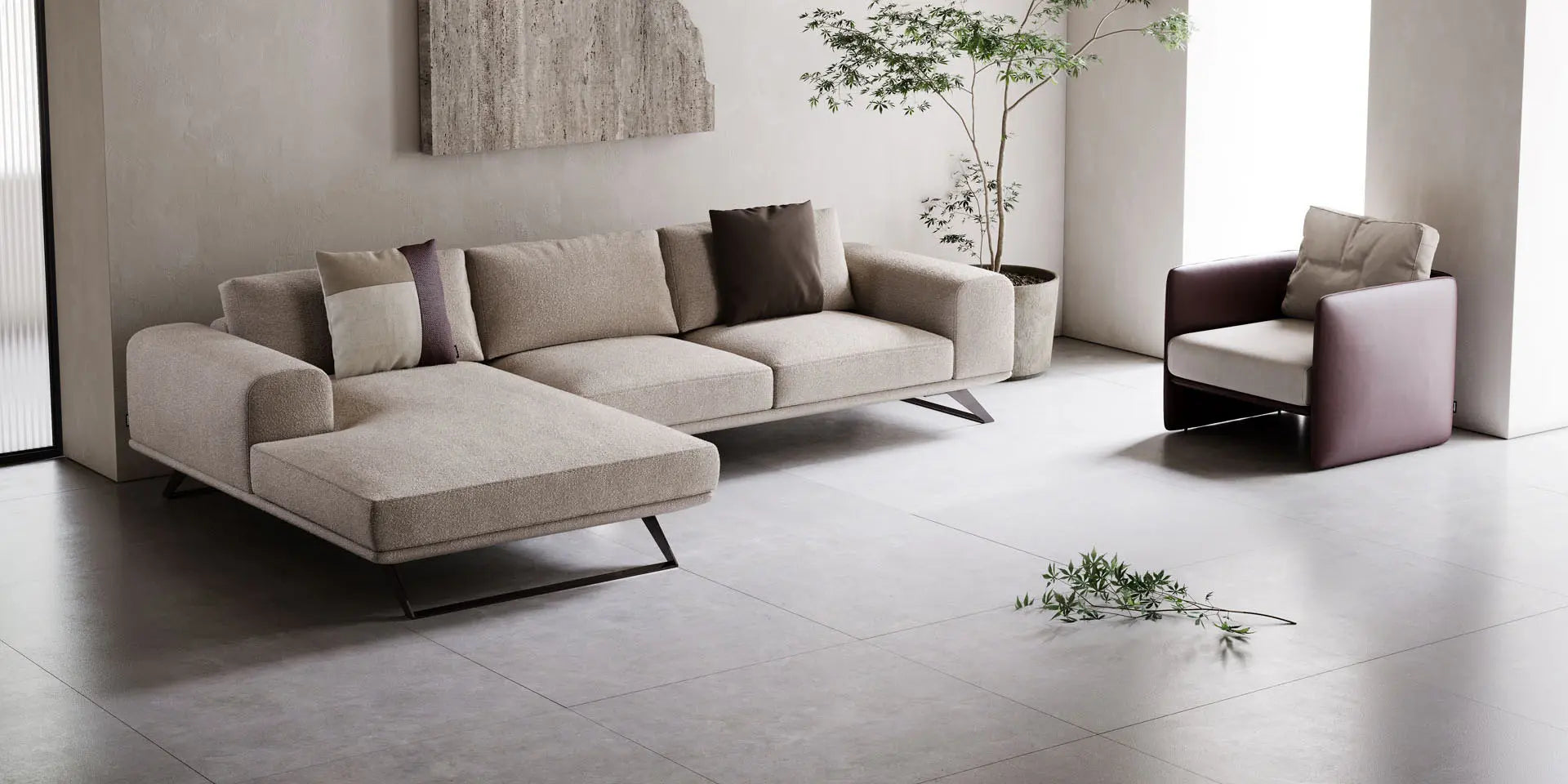 Aniston sohvassa on selkeät suorat linjat kolmionmallisilla jaloilla, joka luo perinteisen mutta silti modernin ilmeen. Mukavuutta lisää 3kpl koristetyynyjä samalla kankaalla.